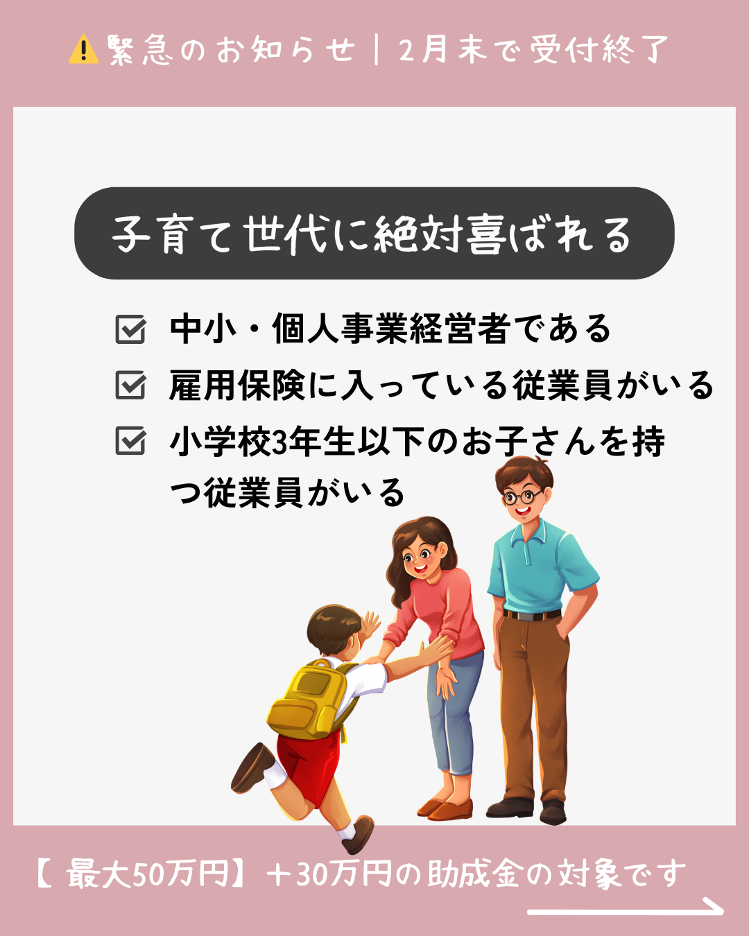 \今年度中の申請、最終チャンス!/ 【最大50万円】+30万円の助成金申請受付は【2/28まで】
