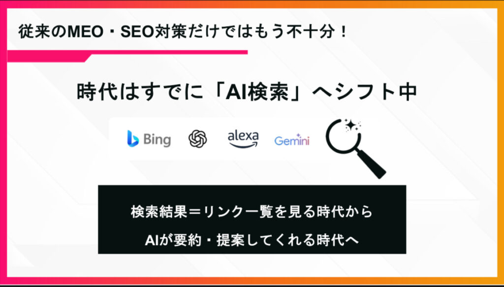 従来のSEO/MEOの延長ではなく、AIに理解・推薦される情報整備=AI対策(AIO)が必須!