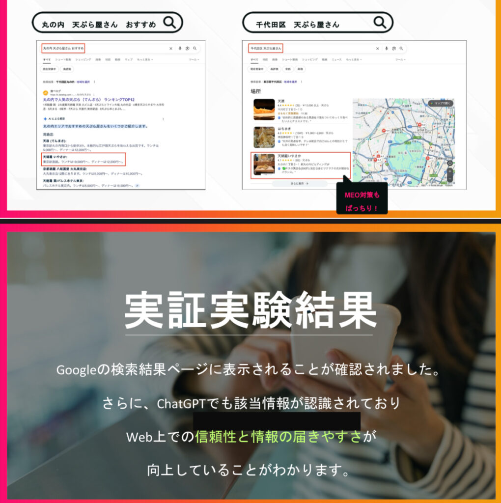 常に最新かつ正確な店舗情報を提供することでAIからの信頼性を高めユーザーへの誤情報提供を防ぎます。